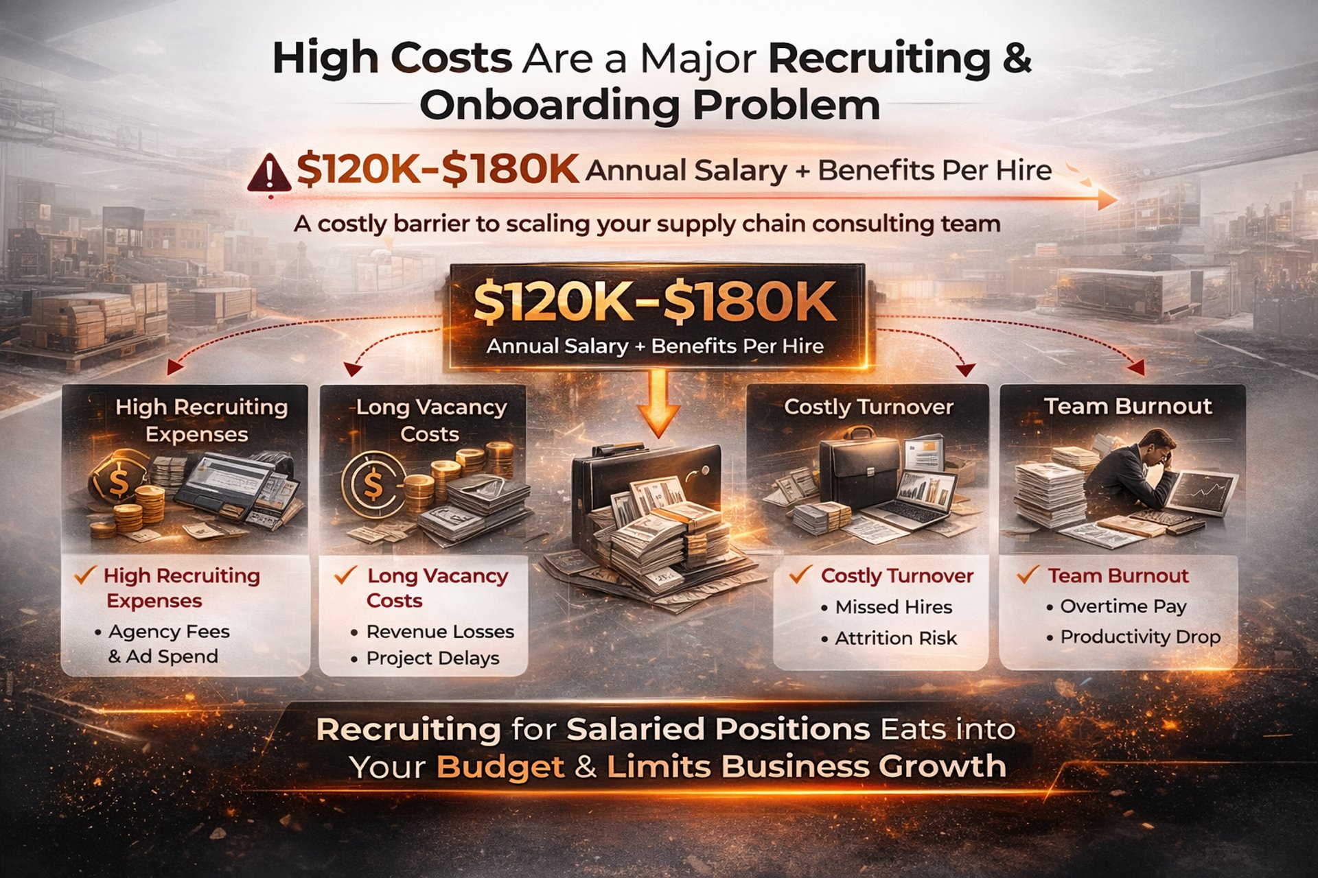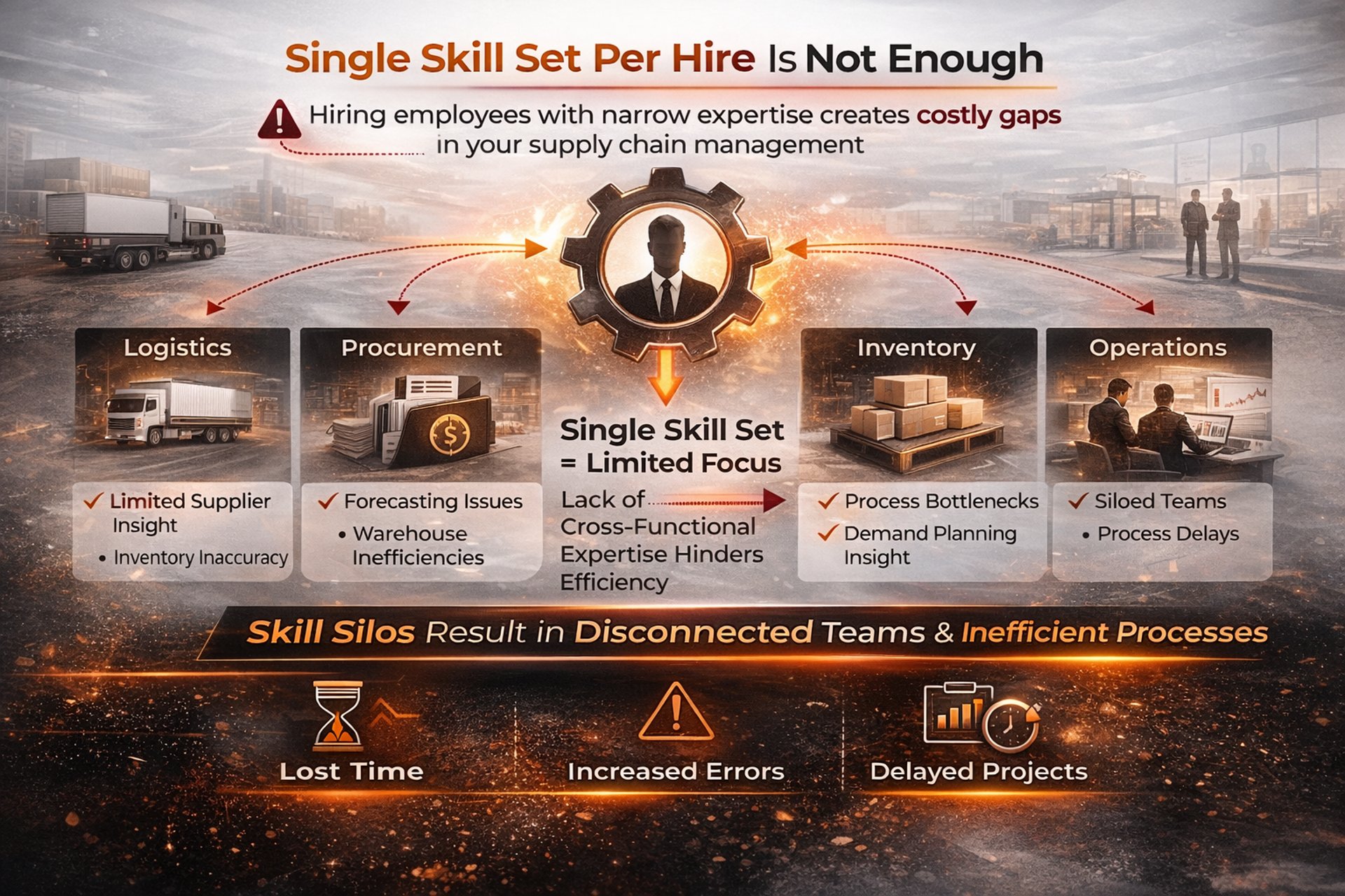 At this stage, the issue is speed and skills. Hiring takes months, requires extensive onboarding, and delays stability while problems keep compounding. Each day without proper supply chain management costs you money, customer satisfaction, and growth momentum.