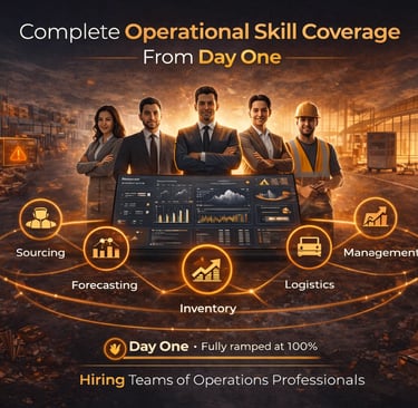 Externalizing execution with a dedicated team of supply chain experts provides immediate operational stability through comprehensive skill coverage that would take years and significant investment to build internally.